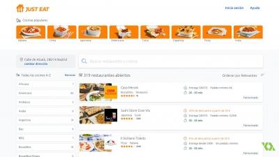 Ao digitar seu endereço, o Just Eat mostrará todas as opções disponíveis em sua área, para que você possa escolher a que mais lhe agrada. Eles podem ser pedidos de várias maneiras, por tipo de alimento ou por pedido genérico, com base em critérios como: avaliação de clientes anteriores, em ordem alfabética, por relevância, pedido mínimo ou custos de entrega.